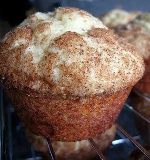 Soften the butter for the topping in a small container. In the meantime, combine the granulated sugar and cinnamon collectively in a unique container.