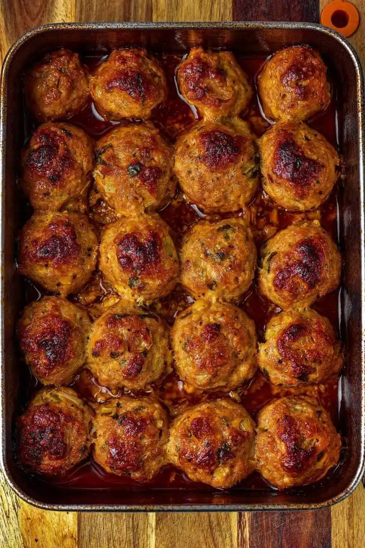 Bake for 15 minutes or until the meatballs are crisp on the outside.