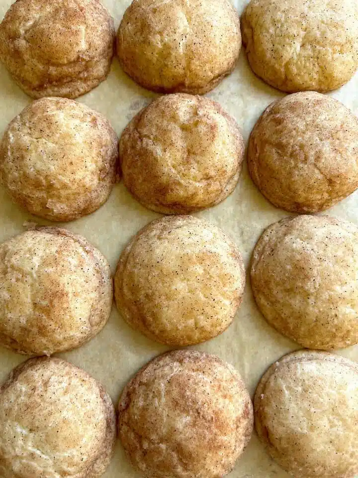 - Scoop and roll dough into balls about 1 inch in diameter and then roll all sides in cinnamon mixture.