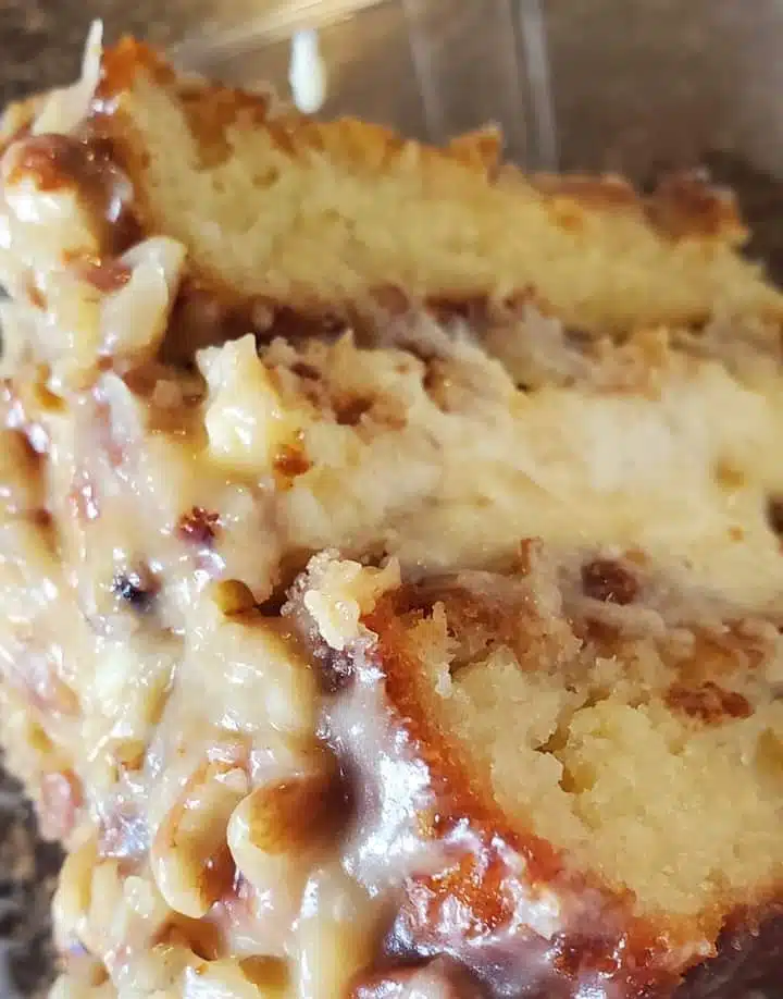 Remove from heat and stir in the vanilla extract, shredded coconut, and chopped pecans.