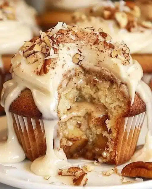 Frost the cooled muffins generously and sprinkle with chopped walnuts.