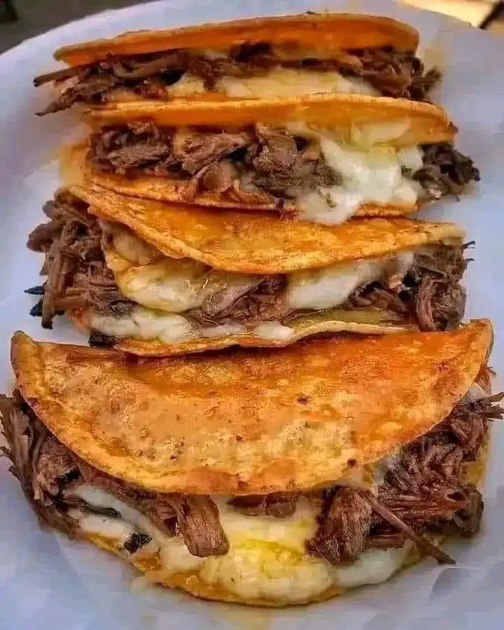 Optionally, dip assembled tacos in the beef liquid before serving for extra flavor