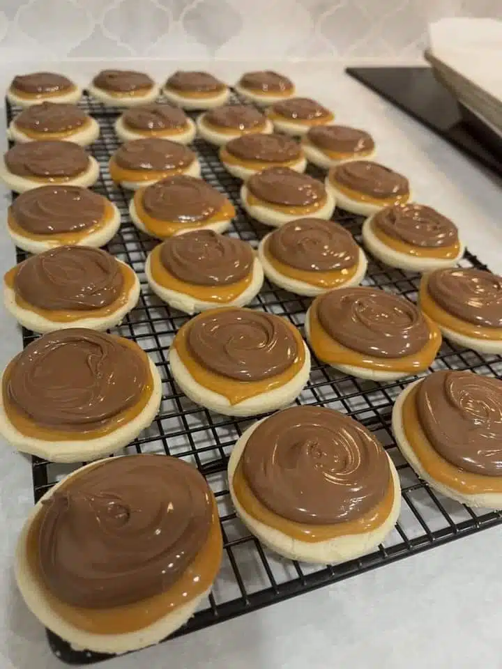 - Take about 1 tablespoon of dough and flatten it within the palm of your hand. Place a halved mini Twix bar within the heart and wrap the dough round it, rolling it right into a ball. Make sure that the Twix bar is totally coated by the dough.