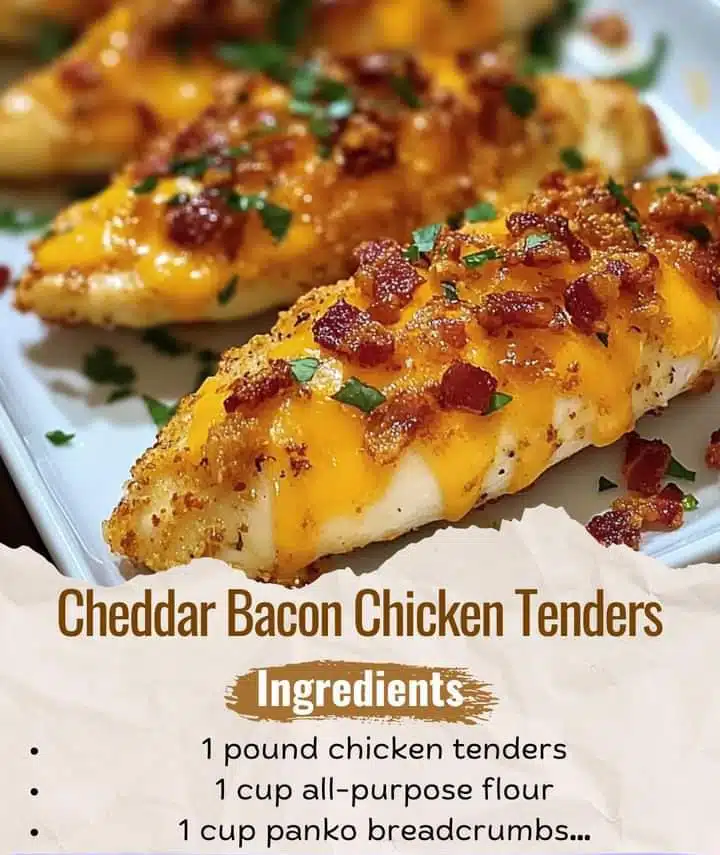 In a third dish, mix panko breadcrumbs with shredded cheddar cheese and crumbled bacon.