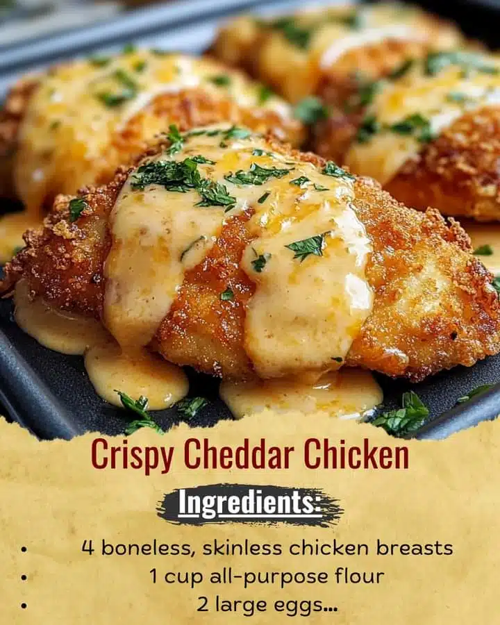 Get your crunch on with this Crispy Cheddar Chicken! Perfectly baked with a cheesy, crispy coating that’s sure to satisfy.