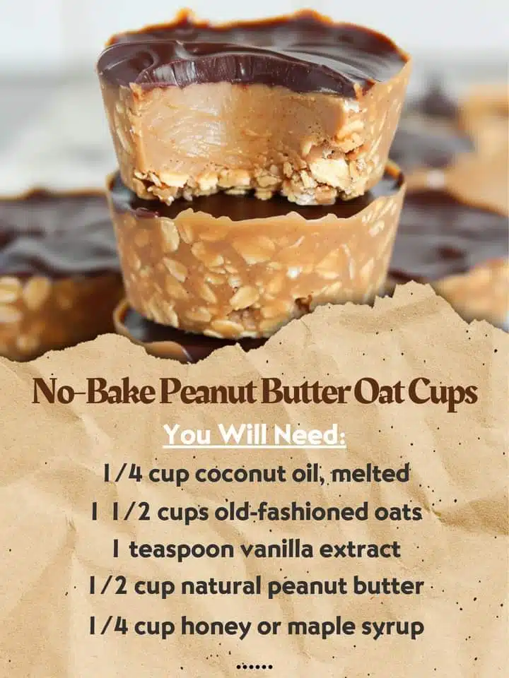 These delicious no-bake peanut butter oat cups are a healthy and quick snack option, packed with oats and peanut butter. Perfect for on-the-go or as a satisfying treat.