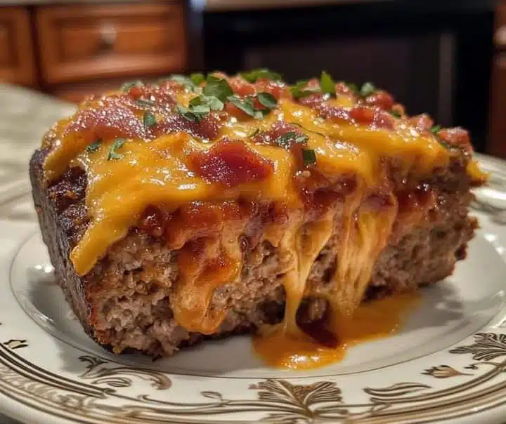 Combine ground beef, chopped bacon, breadcrumbs, ketchup, cheddar cheese, egg, salt, and pepper. Mix until well combined.