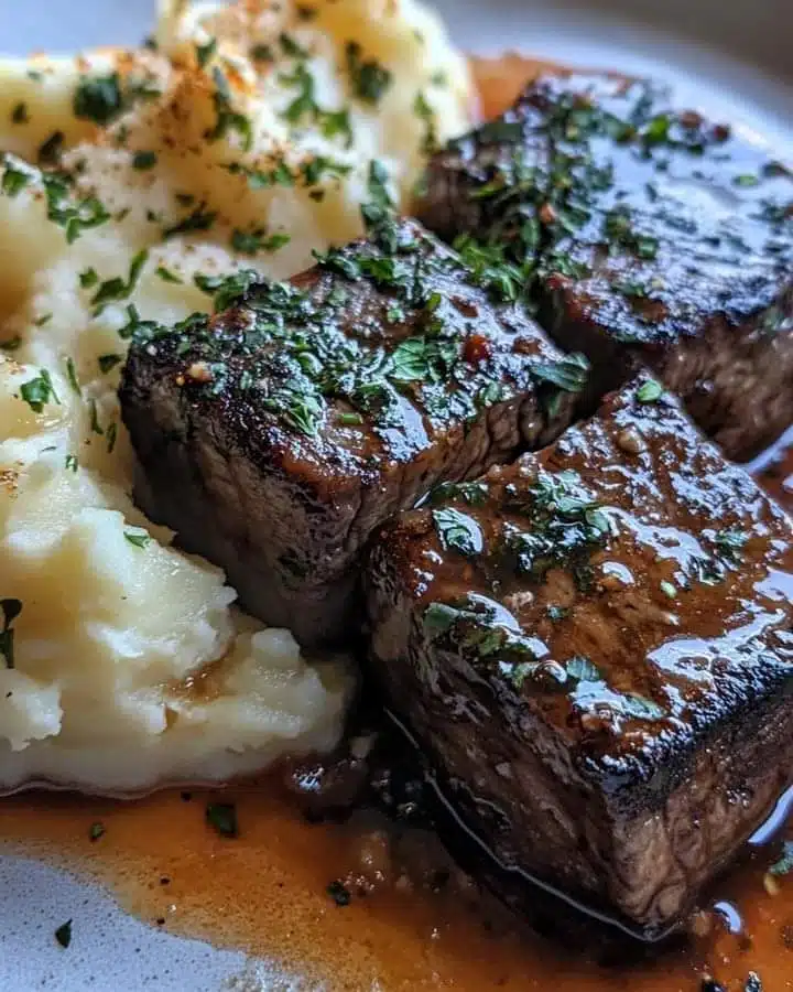 Enjoy these savory, tender Homemade Garlic Butter Steak Bites and Mashed Potatoes, perfect for any occasion!
