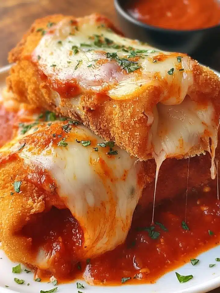 Sauce and Cheese: Pour half the marinara sauce right into a baking dish. Place fried hen rolls within the dish, cowl with remaining sauce, and high with any leftover mozzarella slices.