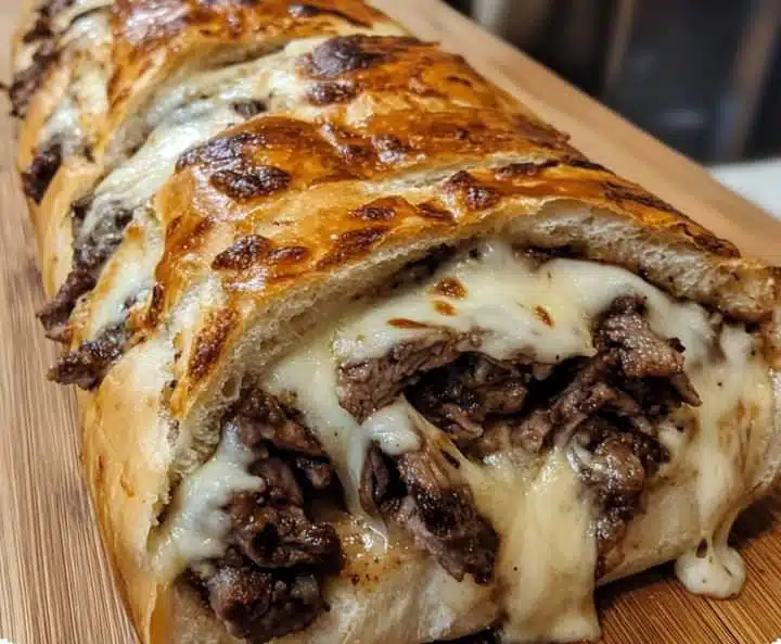 Slice the Cheesesteak Stromboli into pieces and serve warm. Enjoy the deliciously cheesy and savory filling encased in golden, flaky dough!