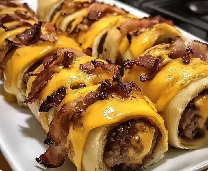 Keywords: garlic butter rollups, bacon cheeseburger recipe, easy appetizers, savory snacks, crescent roll recipes, cheeseburger rollups, party food