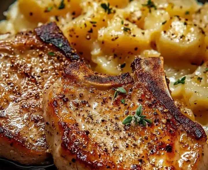 Garlic Parmesan Pork Chops with Cheesy Scalloped Potatoes – a flavor-packed dinner!