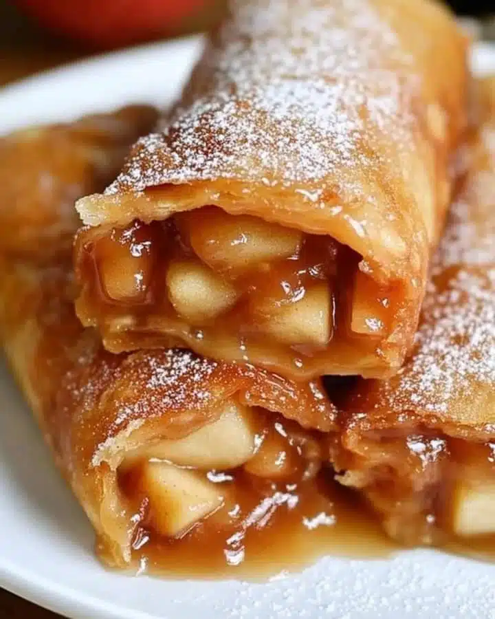 A delicious, crispy fall dessert, these Caramel Apple Chimichangas are filled with a sweet apple pie filling and caramel sauce, then fried to golden perfection and coated in cinnamon-sugar. A perfect autumn treat!