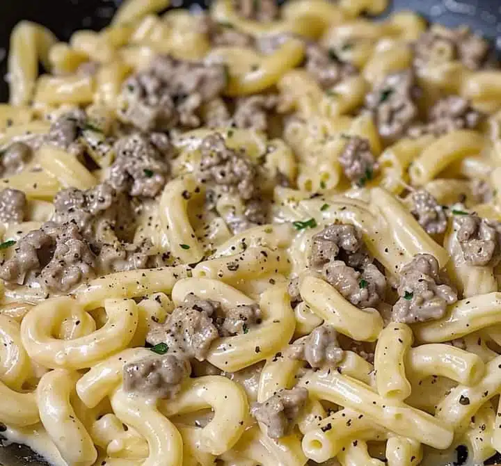 Creamy Ground Beef Alfredo Pasta