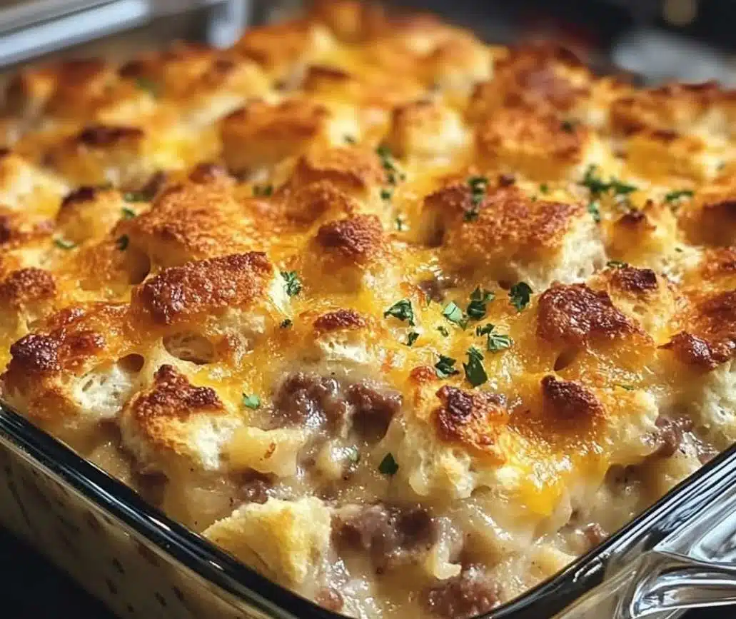 Biscuits and Gravy Hashbrown Breakfast Casserole
