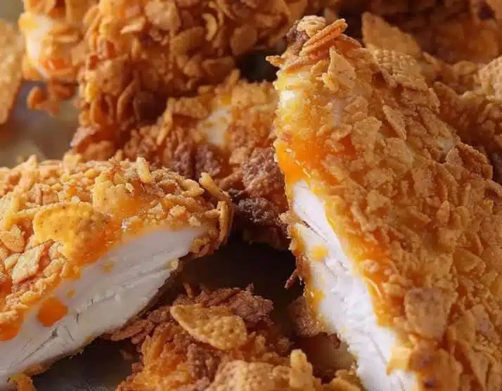 These crispy and flavorful chicken tenders are coated in crunchy Doritos, creating a perfect crunchy texture. With just a few simple ingredients, they make a fun and delicious dinner or snack!