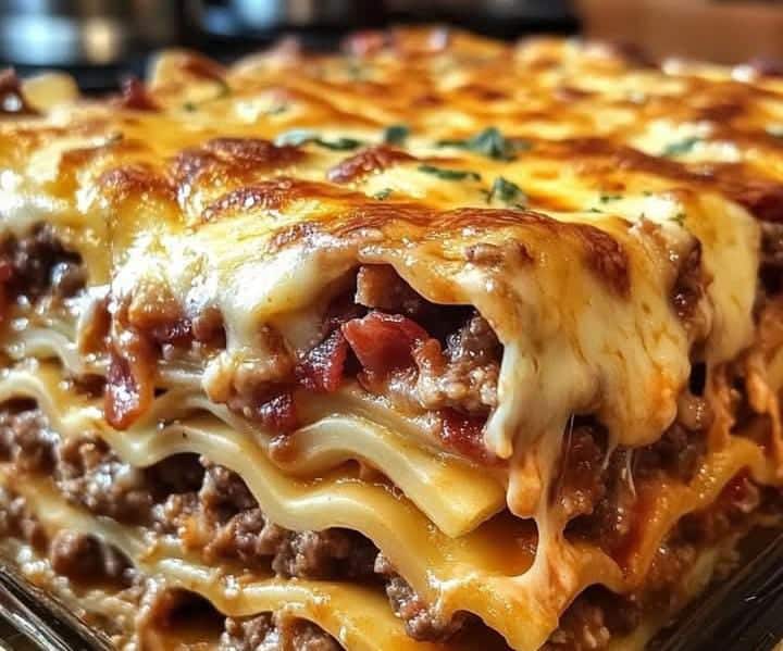 Let the lasagna cool for 10 minutes before slicing. Garnish with chopped fresh parsley before serving.