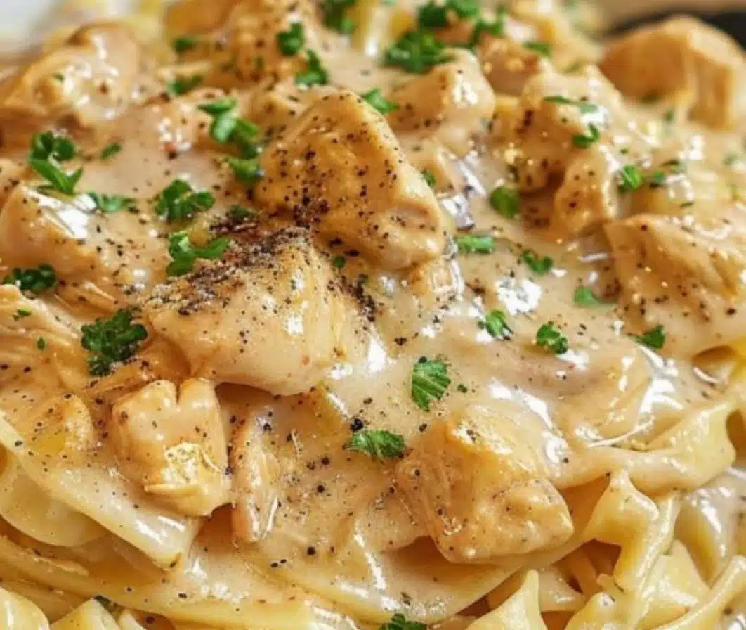 In a saucepan over medium heat, melt the butter. Add the Italian dressing mix, golden mushroom soup, chicken broth, cream cheese. Stir until the mixture is smooth and creamy.