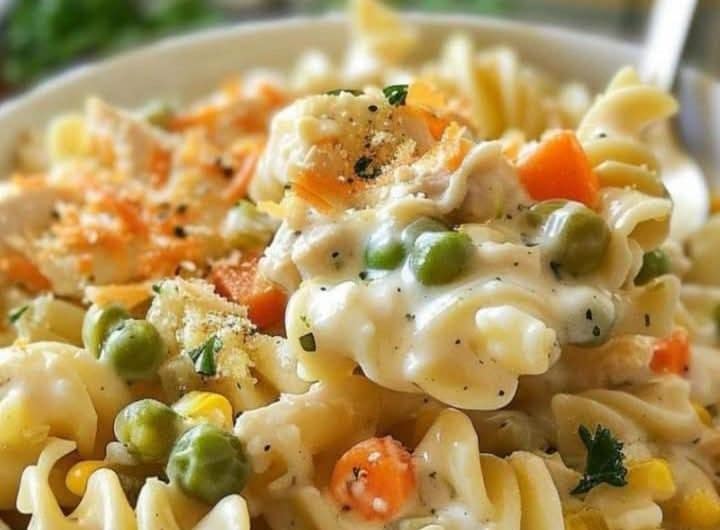 Homestyle Chicken Pot Pie Transformed into Creamy Pasta