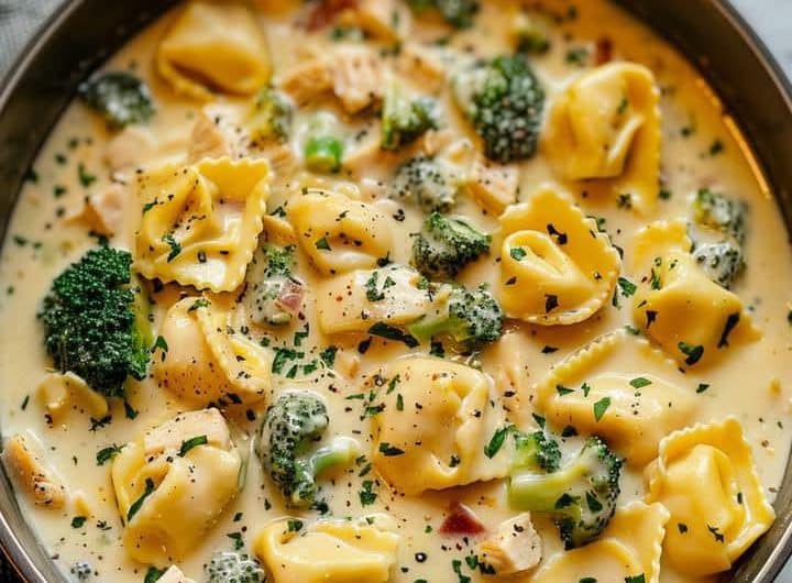 This delightful dish combines tender cheese-filled tortellini, juicy chicken, and fresh broccoli, all enveloped in a rich garlic Parmesan cream sauce. It’s a comforting meal that’s both satisfying and easy to prepare.