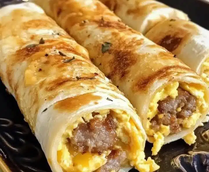 🌯 Sausage, Egg, and Cheese Breakfast Roll-Ups – your perfect morning bite! 🌯