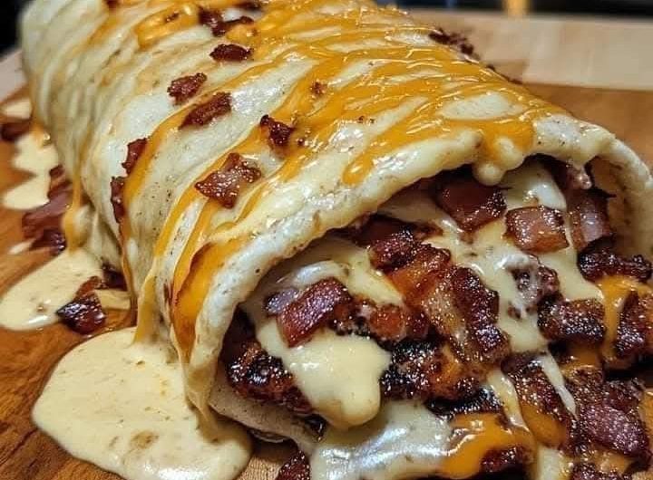 Ultimate Bacon Cheeseburger Burrito with Creamy Cheese Sauce