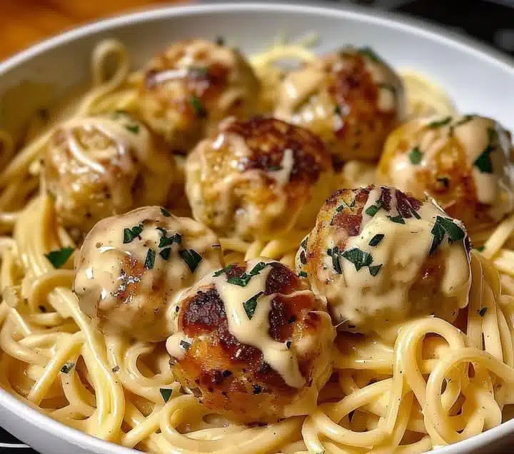 Garlic Butter Chicken Balls with Creamy Parmesan Pasta