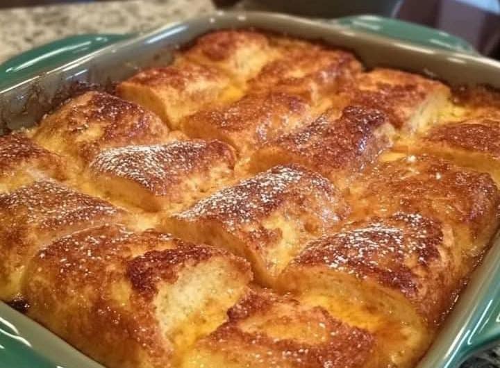 Slice the French bread, about 1-inch thick. Arrange slices in your prepared baking dish in rows, overlapping the slices. Set aside.