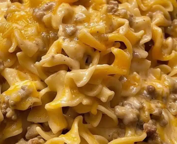 In a large mixing bowl, combine the cooked noodles, browned ground beef, tomato soup, golden mushroom soup, milk, dried onion, Worcestershire sauce, and parmesan cheese. Stir until well mixed.