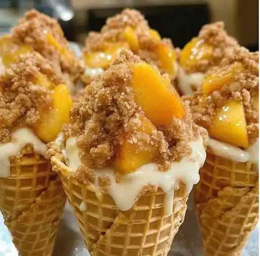 If you’re looking for a show-stopping dessert that blends creamy cheesecake, juicy peaches, buttery crumble, and crunchy waffle cones — you’ve found it. These Peach Cobbler Cheesecake Cones are a no-bake (mostly!), crowd-pleasing treat that looks impressive and tastes even better.