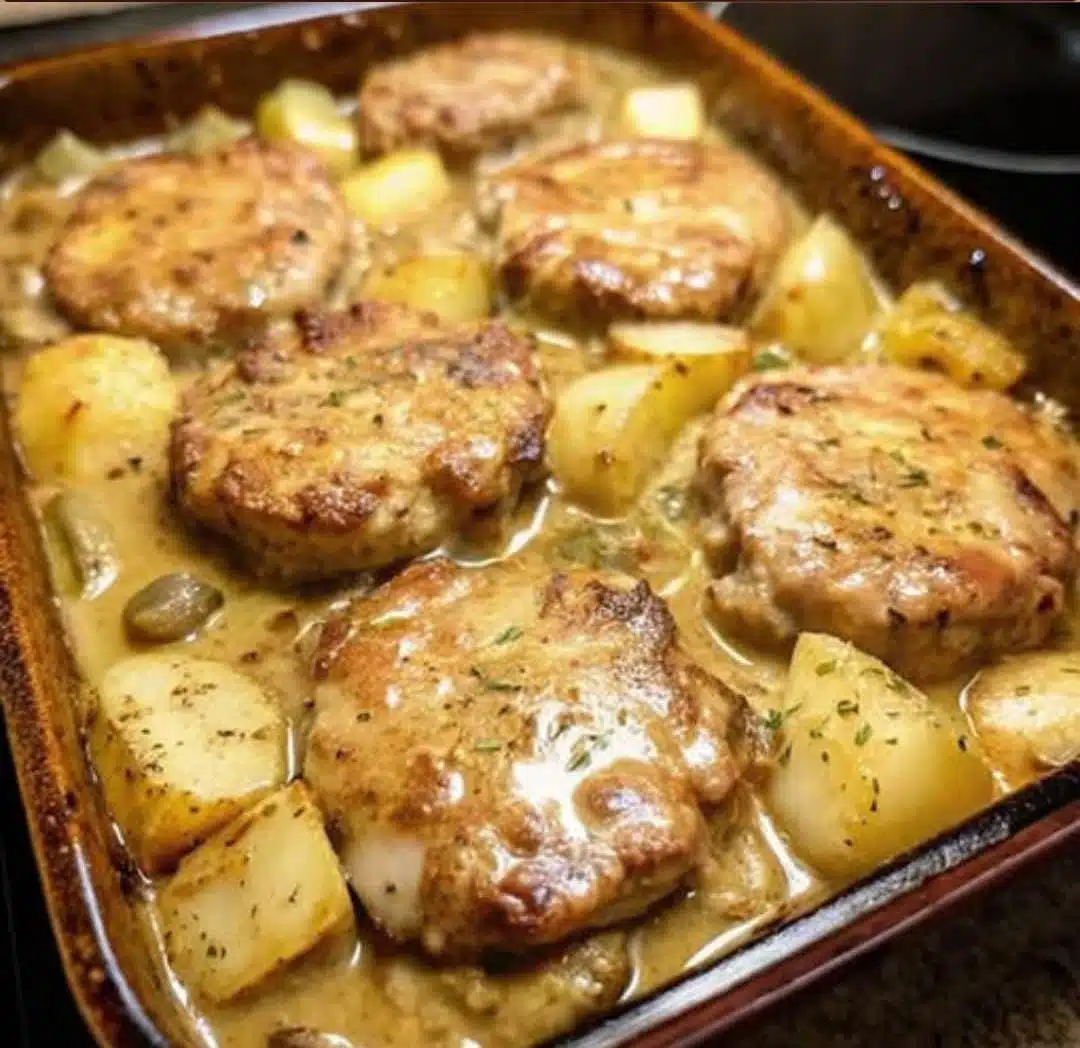 Looking for a hearty, soul-warming meal that brings the family together? These Smothered Pork Chops with Potatoes in Gravy are the definition of comfort food. Tender, juicy pork chops are seared and then baked to perfection in a savory, creamy gravy loaded with flavor and layered over soft, roasted potatoes. This dish is not only satisfying but easy to make using simple pantry ingredients. It’s the kind of recipe that earns a permanent spot in your weeknight dinner rotation.