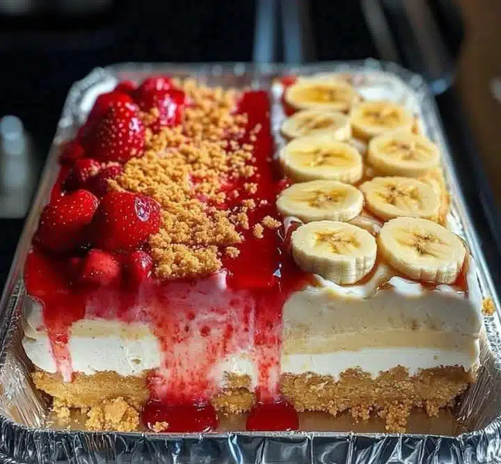 If you’re looking for a show-stopping dessert that brings together rich, creamy textures with fresh fruit and irresistible crunch, this recipe is for you. Strawberry Crunch Cheesecake and Banana Pudding Cheesecake in one pan – a dreamy dessert layered with flavor, perfect for parties, holidays, or just treating yourself!
