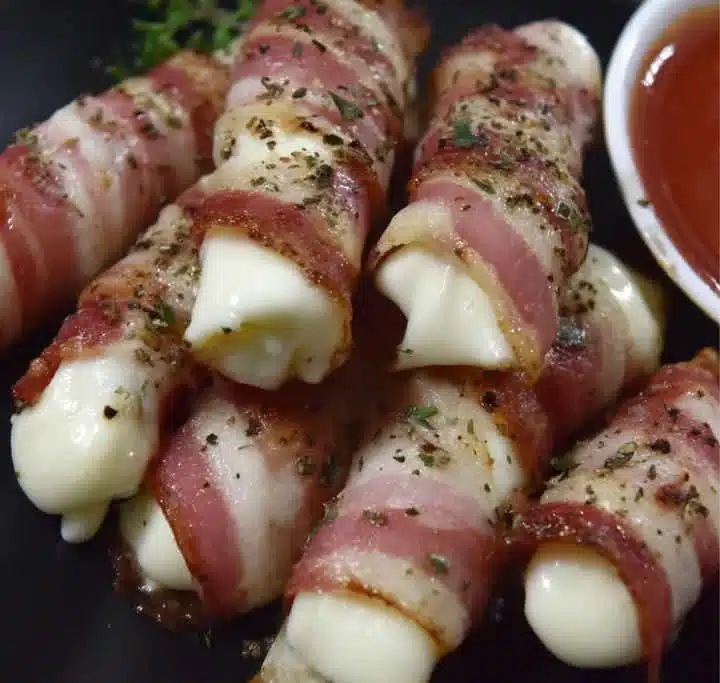 Bacon-Wrapped Mozzarella Sticks – Crispy, Cheesy, and Totally Irresistible!