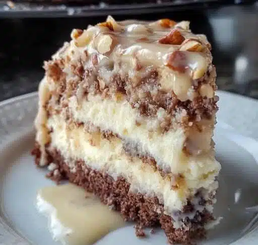 White German Chocolate Cake with a Cheesecake Center – A Show-Stopping Dessert You Must Try!