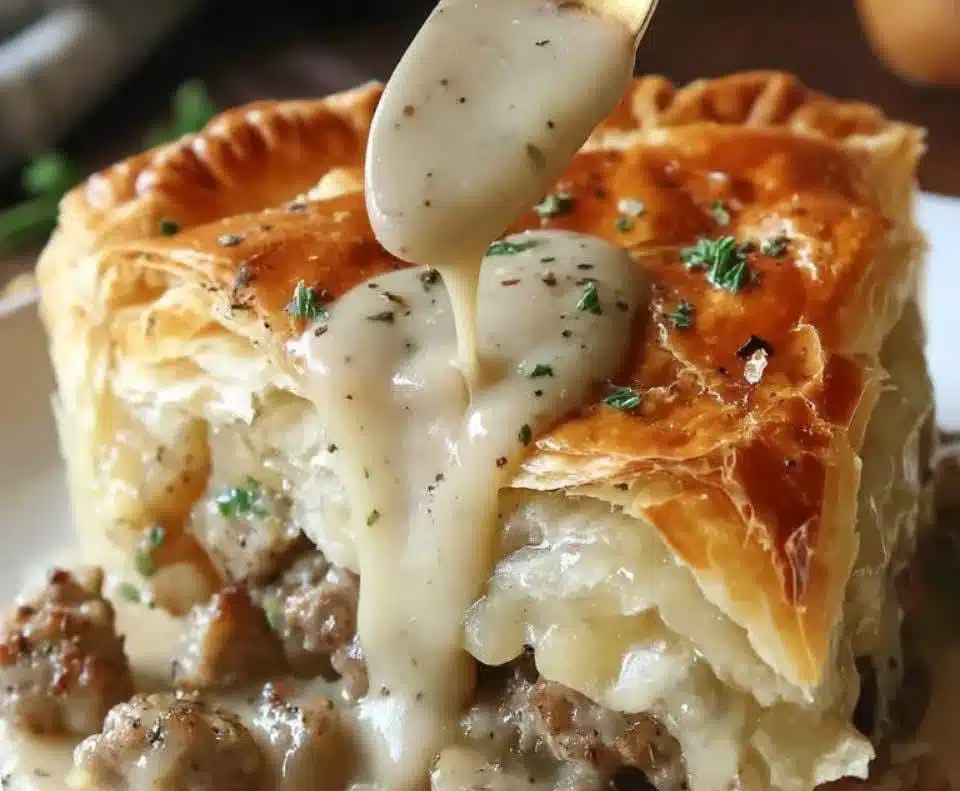 Sausage Gravy Puff Pie – Crispy, Buttery, and Packed with Comfort!