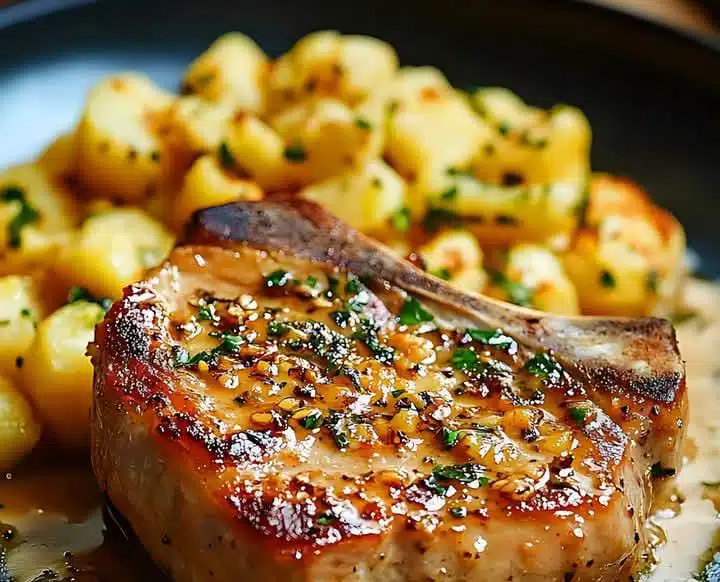 Garlic-Butter Pork Chops with Cheesy Potato Delight