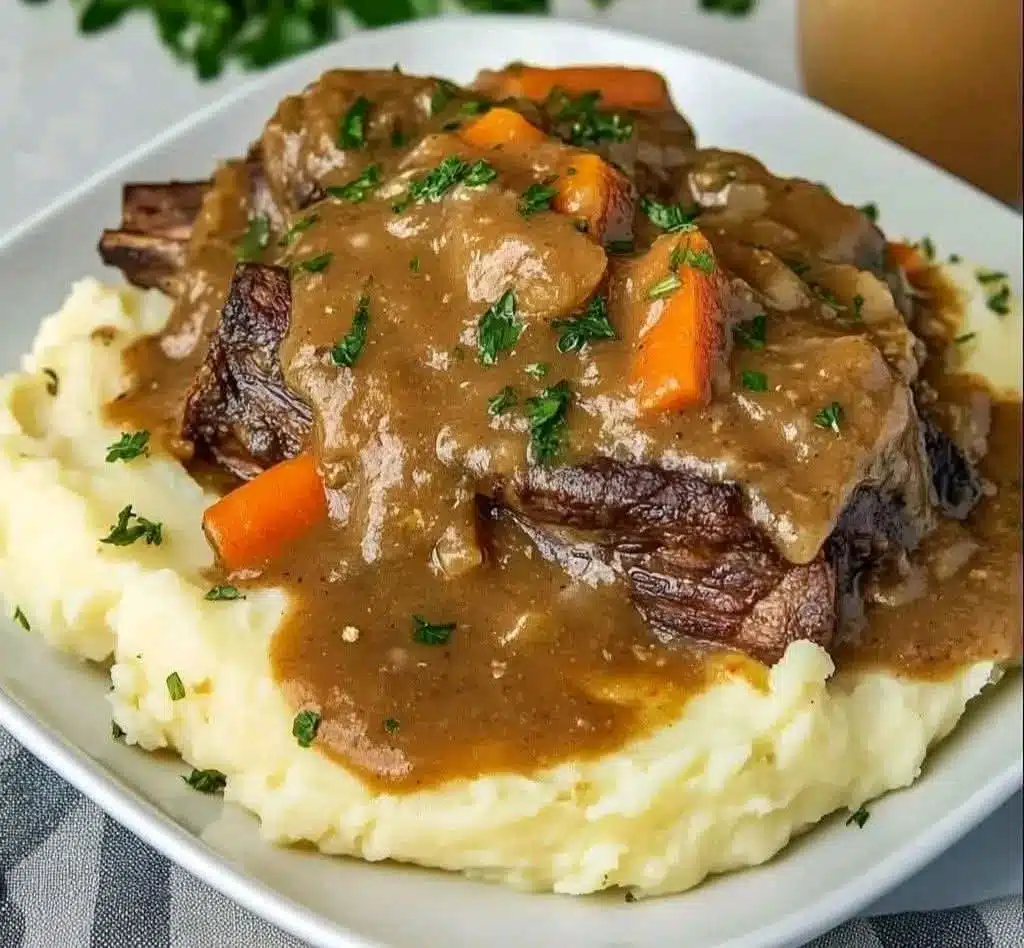 Fall-Off-The-Bone Tender Short Ribs Over Creamy Mashed Potatoes – A Comfort Food Classic