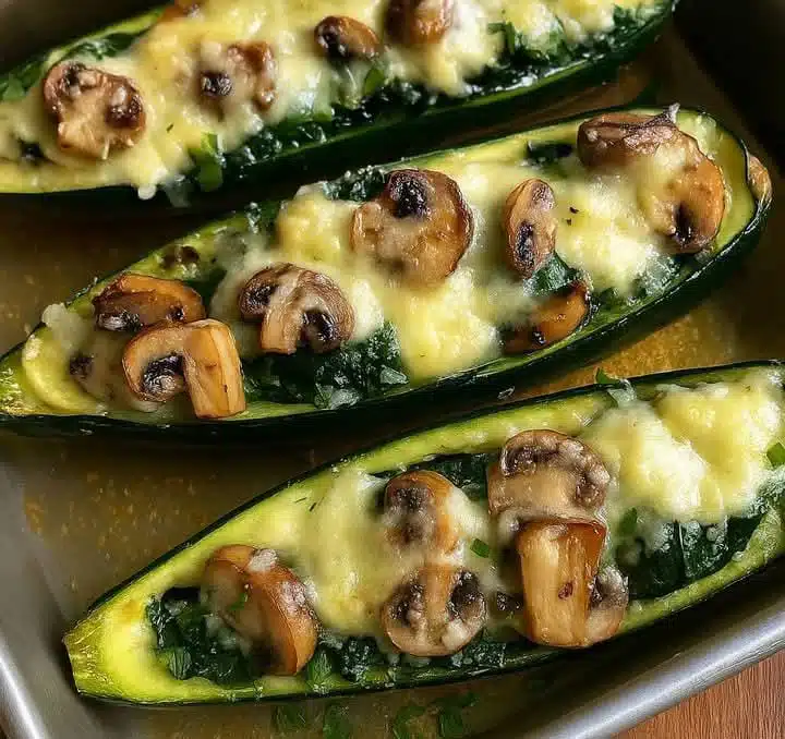 Spinach Mushroom and Ricotta Stuffed Zucchini Boats – A Light & Flavorful Vegetarian Delight