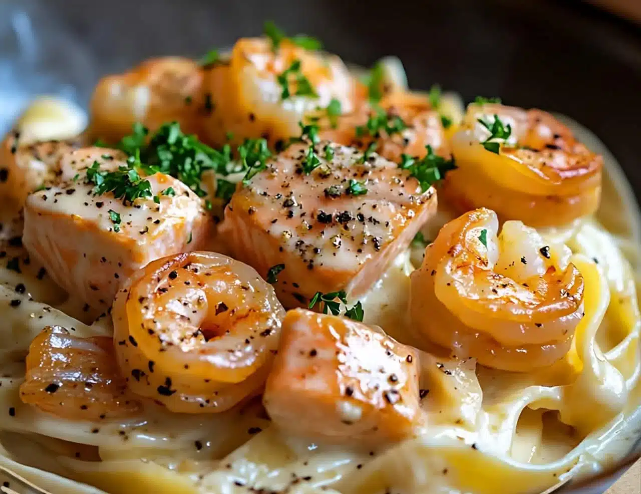 • A Seafood Upgrade: Combining salmon and shrimp takes Alfredo pasta to the next level.