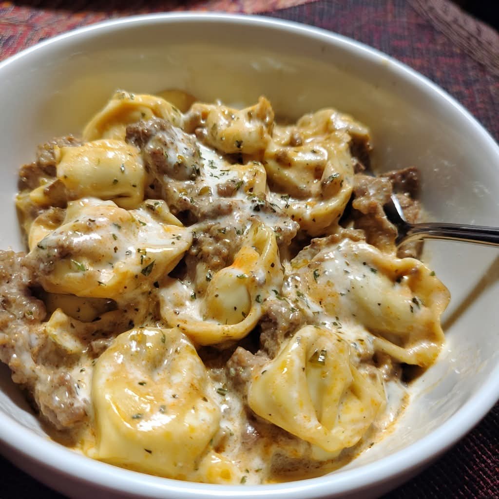 Spoon the creamy tortellini and beef mixture into bowls. Garnish with parsley or even extra shredded cheese if you want. Serve hot and enjoy every bite.