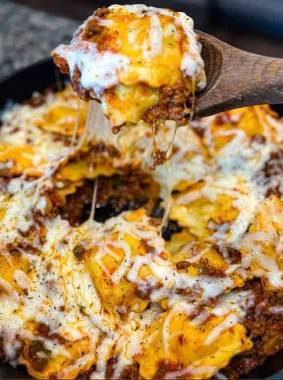 It uses store-bought cheese ravioli (or any flavor you like), rich and flavorful meat sauce, and plenty of gooey, melted cheese. The result? A bubbly, cheesy, crowd-pleasing meal that your family will ask for again and again.