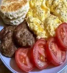 While sausage patties add savoriness, removing them makes this meal lighter, cleaner, and suitable for anyone who prefers a balanced breakfast. You still get protein from the eggs, fiber from the tomatoes, and satisfying carbs from the biscuits — all the essentials for sustained energy throughout the morning.