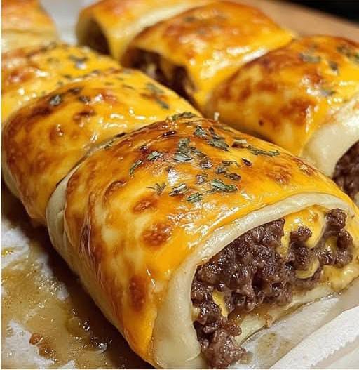 ultimate comfort food that combines juicy ground beef, melted cheese, and golden buttery dough. Each rollup is brushed with garlic butter and baked until crispy on the outside and soft on the inside. Perfect for a quick dinner, party snack, or even a fun twist on classic cheeseburgers!