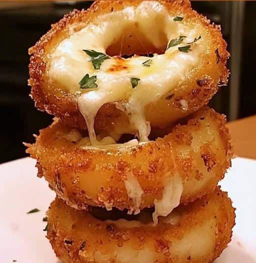 Mozzarella-Stuffed Onion Rings with Garlic Butter