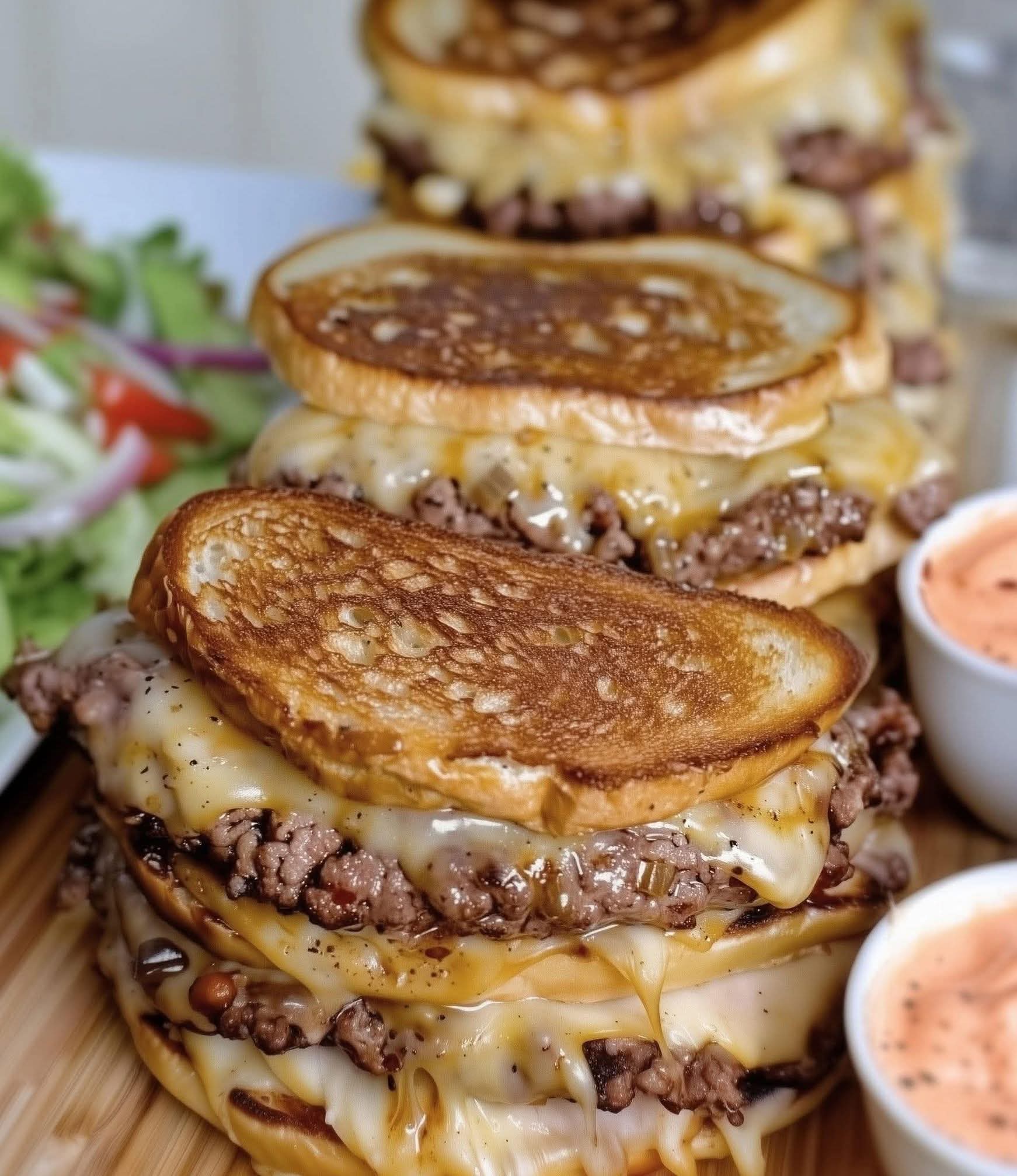 A classic diner favorite that combines the best of a cheeseburger and a grilled cheese sandwich. Crispy, buttery bread, juicy beef patties, melted cheese, sweet caramelized onions, and a rich secret sauce—this patty melt is pure comfort food and perfect for lunch or dinner.