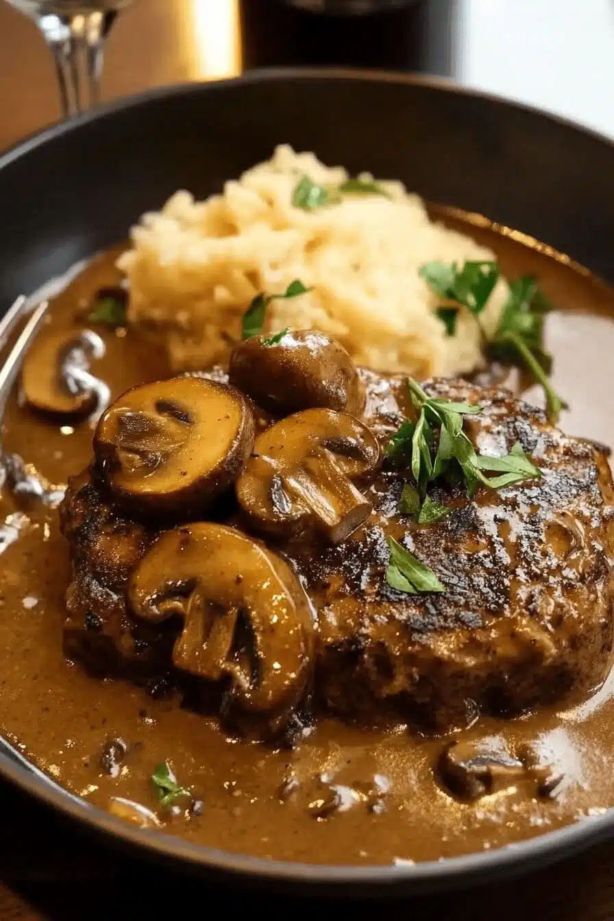 Salisbury Steak with Garlic Mashed Potatoes & Mushroom