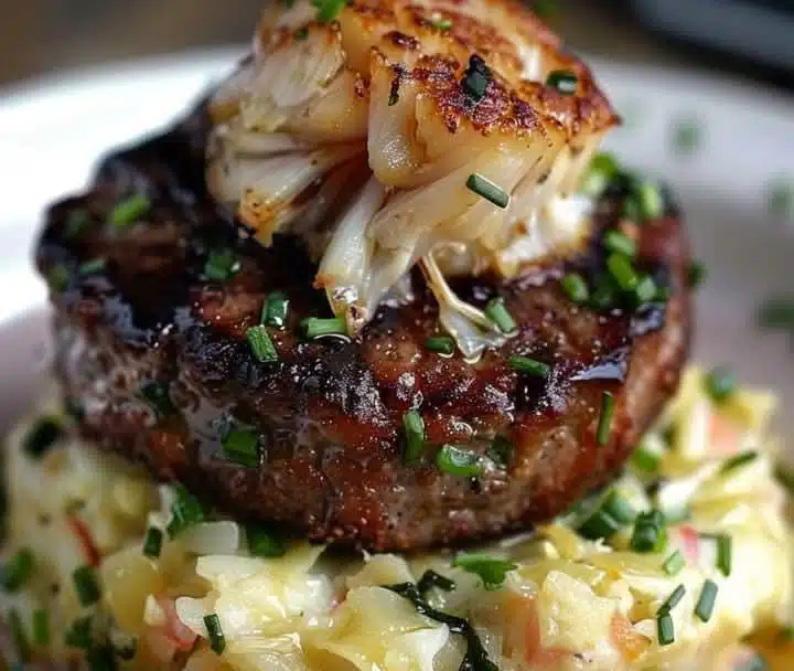 Steak and Crab Cake Delight with Creamy Lemon-Garlic Sauce Experience the perfect blend of land and sea with this luxurious…