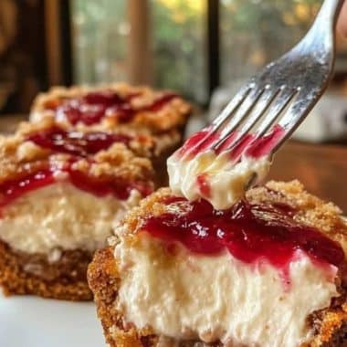0 commentsTwice-Baked Rhubarb Cheesecake Bombs A Mini Cheesecake Explosion with Tangy-Sweet Rhubarb Topping Introduction Looking for a show-stopping dessert that blends creamy, tangy, sweet, and crunchy in one bite-sized package? These Twice-Baked Rhubarb Cheesecake Bombs are exactly what you need. They’re not just regular cheesecakes—they’re mini, indulgent bombs bursting with flavor, […]