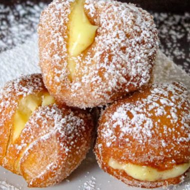 0 commentsBomboloni (Italian Cream-Filled Doughnuts) Ingredients: For the Dough: 3 cups all-purpose flour 2 tbsp sugar 2 tsp instant yeast ½ tsp salt ¾ cup warm milk 2 eggs 50g (3.5 tbsp) soft butter 1 tsp vanilla extract For the Custard Filling: 2 cups milk 4 egg yolks ½ cup sugar […]
