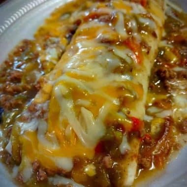 0 commentsIngredients 1 lb ground beef cup chopped onion 2 tsp minced garlic 1 tsp cumin 1/2 tsp salt 1/2 tsp pepper 4.5 oz diced green chile peppers 16 oz refried beans 8 oz tomato sauce 10 oz enchilada sauce 15 oz chili no-beans (Hormel) 6 flour burrito tortillas (about 12 […]